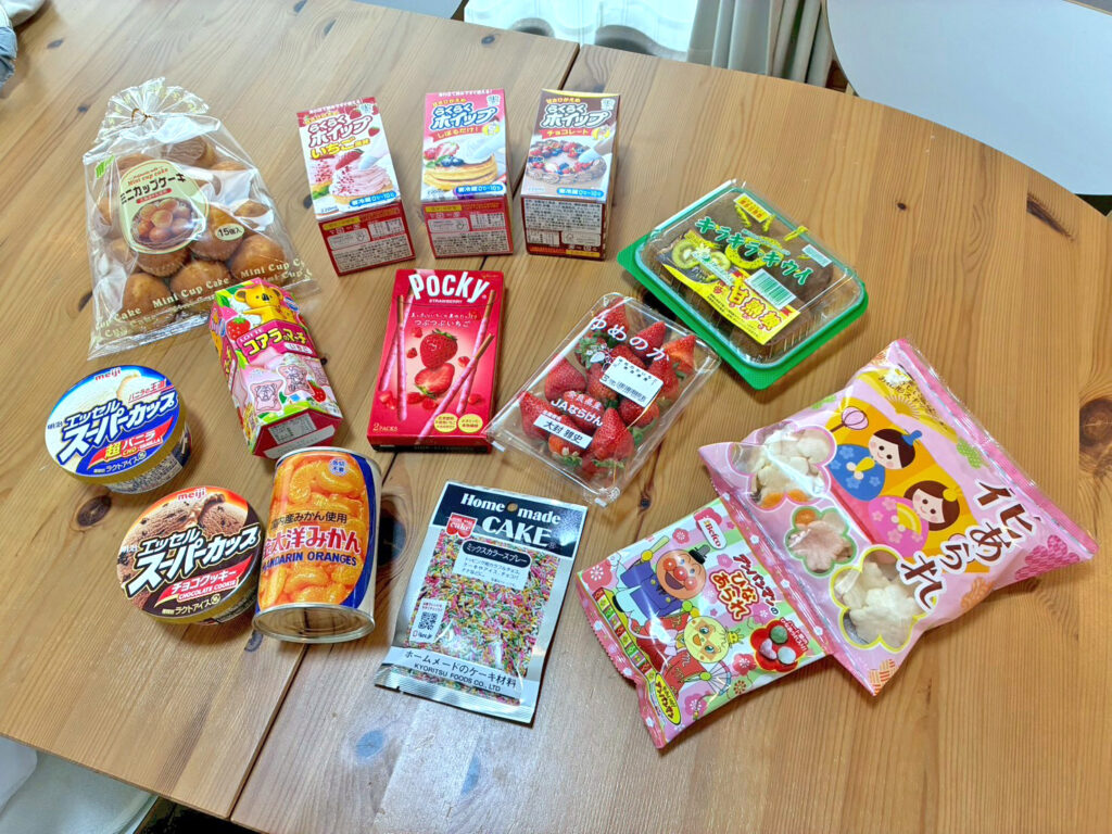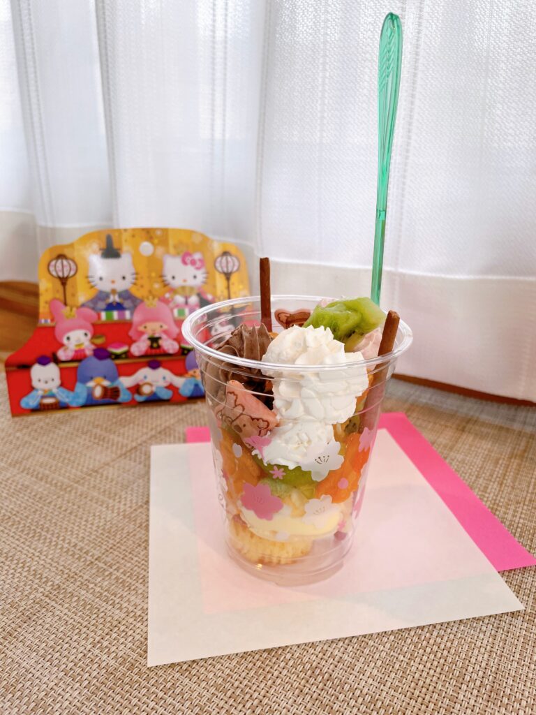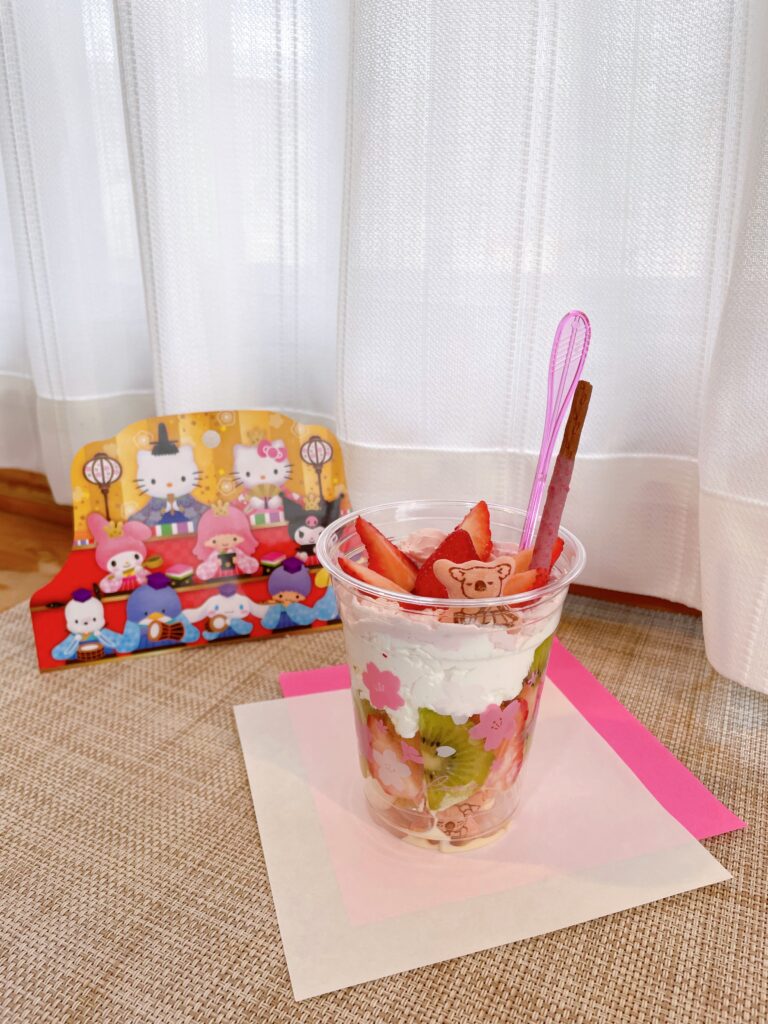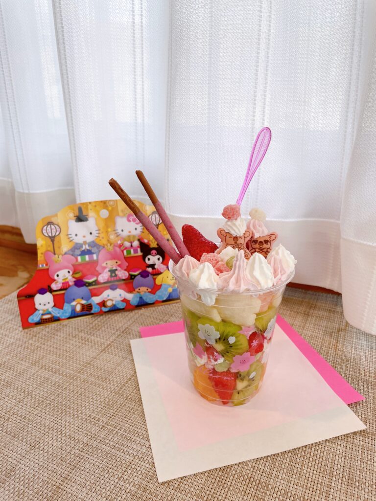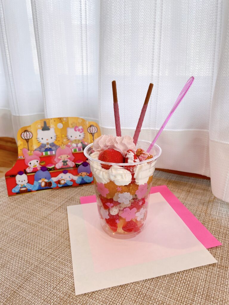 最後にイチゴ味のポッキーとパフェスプーンをさして、完成です🙌