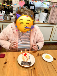 みんなで「ハッピーバースデー♪」を歌い、キャンドルを「ふぅーっ」と吹き消して、温かい拍手が送られました。