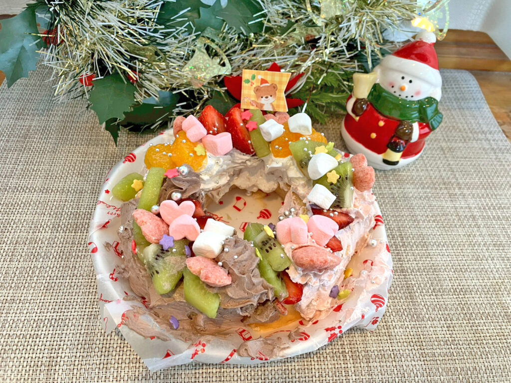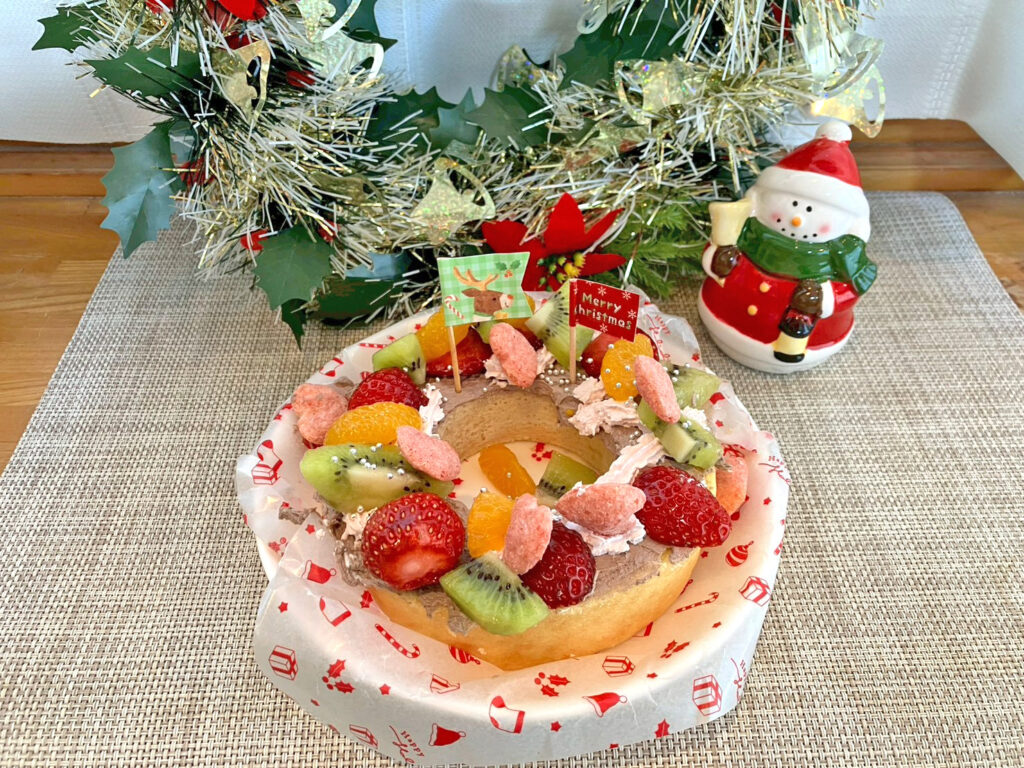 今回は、“自分だけの、オリジナルクリスマスリース風ケーキ”を作りました。