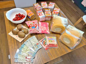 中身は、食料品やコスメ、ヘアピン、ポーチなど。